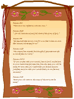 What you do: Glue the Bible verses onto a piece of burlap. Decorate the edges of the burlap with different colors of yarn. Draw swirled designs with the tip of your glue bottle, then lay the yarn into the glue. (I drew leaf and flower designs with the glue, then laid the appropriate colored yarn into the glue.) Wrap the burlap around the dowel and staple the top of the burlap to the back of the burlap and dowel.