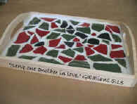 On the sides of the tray write the Bible verse: "Serve one another in love." Galatians 5:13