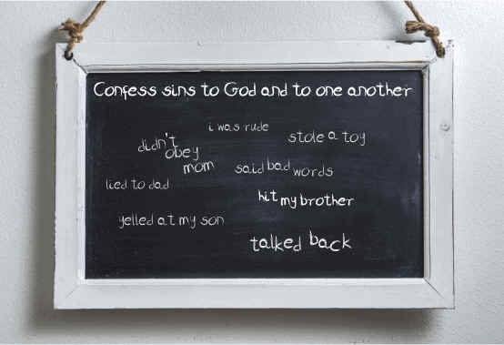 Begin by asking God to remind you of wrong choices or sins done that day and then take turns writing one or two sins from each person on a chalkboard or whiteboard. Take a few moments to prayerfully agree with God that you were wrong, that you are guilty of sinning (or pray silently). If you wronged someone in the group, confess your sin to him or her.