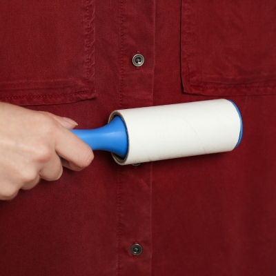 Person 1: (removes lint roller from bag and begins rolling it on kids clothing, floor, seats, etc. and then looking closely at the roller each time.)