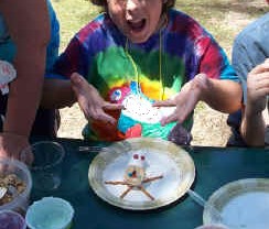 Place it on one of the plates and use pretzel sticks to add arms and legs to the puff or shell, and stick on a marshmallow for the head. Then ask the group what they see and why they think it's yucky. Discuss how this relates to the nasty stuff we sometimes put into our bodies - too much junk food, unclean music, T.V. shows, movies, video games.